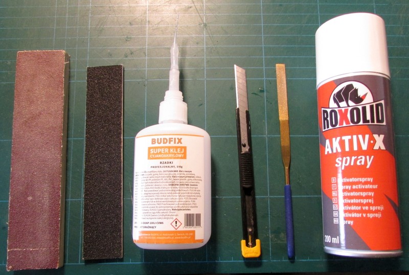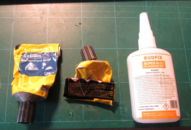 Takže jsem musel vlastně všechny díly vyřezat dvakrát a slepit je dohromady. K tomu jsem použil zbytky v tubách lepidla Chemoprén Extrém. Po slícování dílů jsem ještě obtáhl hrany dílů řídkým sekundovým lepidlem. Kupuji sekundové lepidlo na Alegru, je podstatně levnější než u nás a ve větším balení. Výhodou je i to, že na nádobku lze nasadit i aplikátor na sekundové lepidlo. Aplikátory kupuji na TEMU většinou 100 kusů, protože mi slouží jeden den lepení a pak jej vyhazuji.