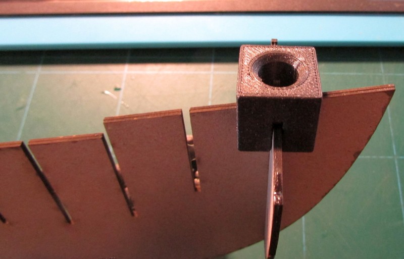 Na stránce polského modeláře kartonowe-hobby.pl jsem viděl 3D tištěné přípravky pro lepení skeletů lodí. Trochu jsem je upravil pro svou potřebu a vytiskl z PLA pro různé tloušťky kartonu. Na fotografiích je vidět jejich použití v případě zájmu poskytnu i soubory STL. Umožňuje mi to lepší fixování dílů do pravého úhlu a zároveň i přidává mi chybějící třetí ruku.